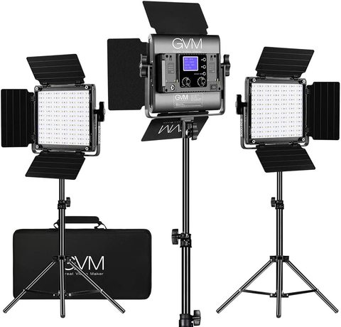 Pantalla LCD regulable GVM RGB 800D 40W, 3 Paquetes de aleación de aluminio con control por aplicación, kit de iluminación LED para estudio de fotografía